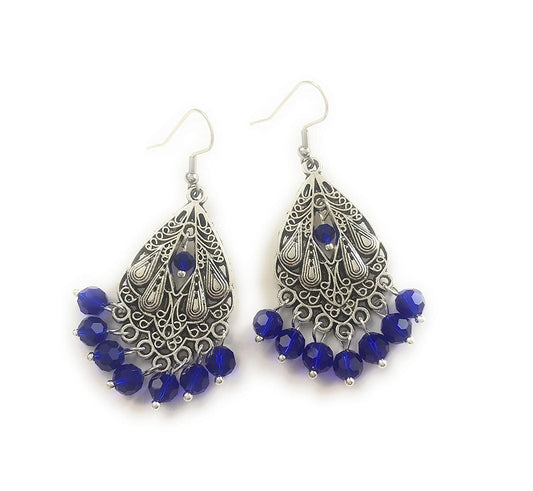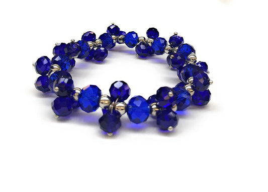 Cobalt Blue Beaded Cluster Stretch Bracelet