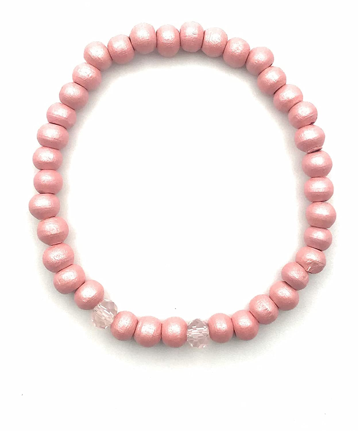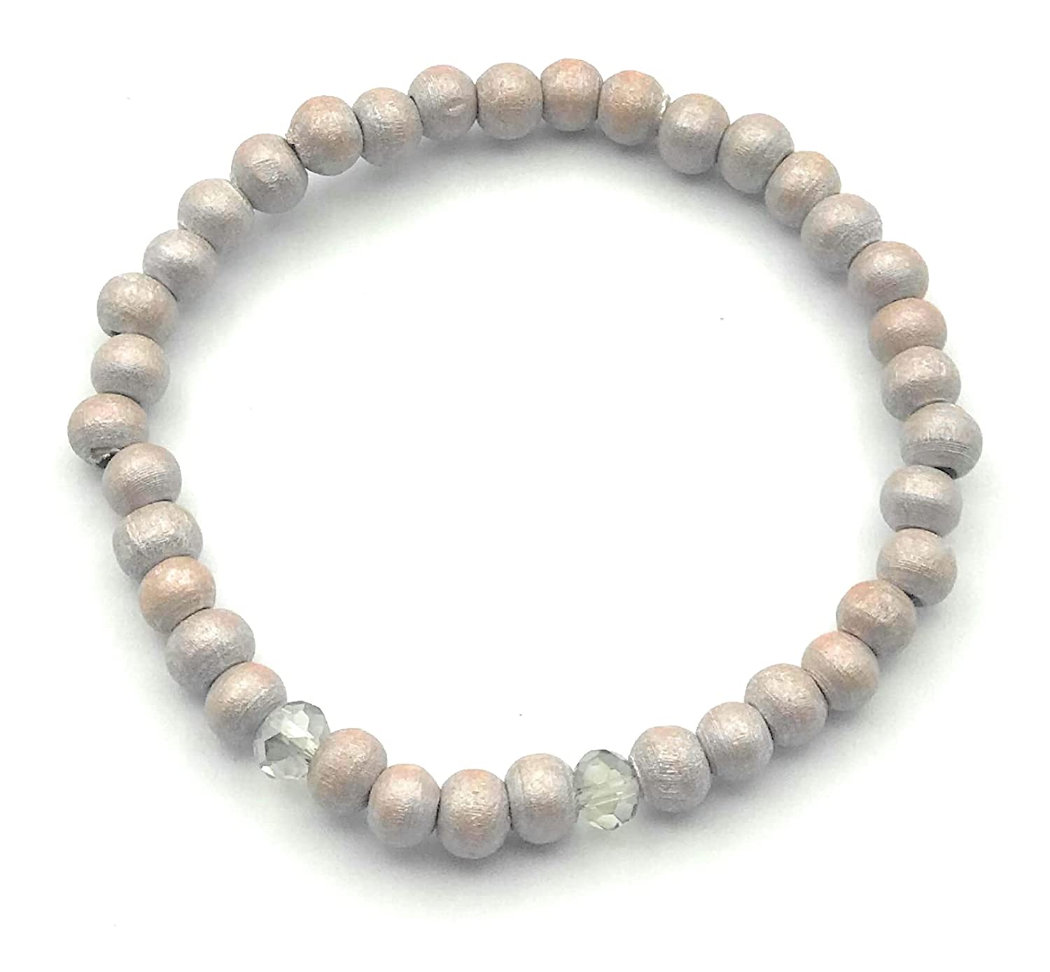 This set of bracelets are made with wooden beads in multiple sizes. They have a silver oval faceted accent bracelet to enhance the look. The four bracelets are strung together with stretch wire. There are coordinating crystal beads mixed with wooden beads for added sparkle. The diameter is about 2.5 Inches.