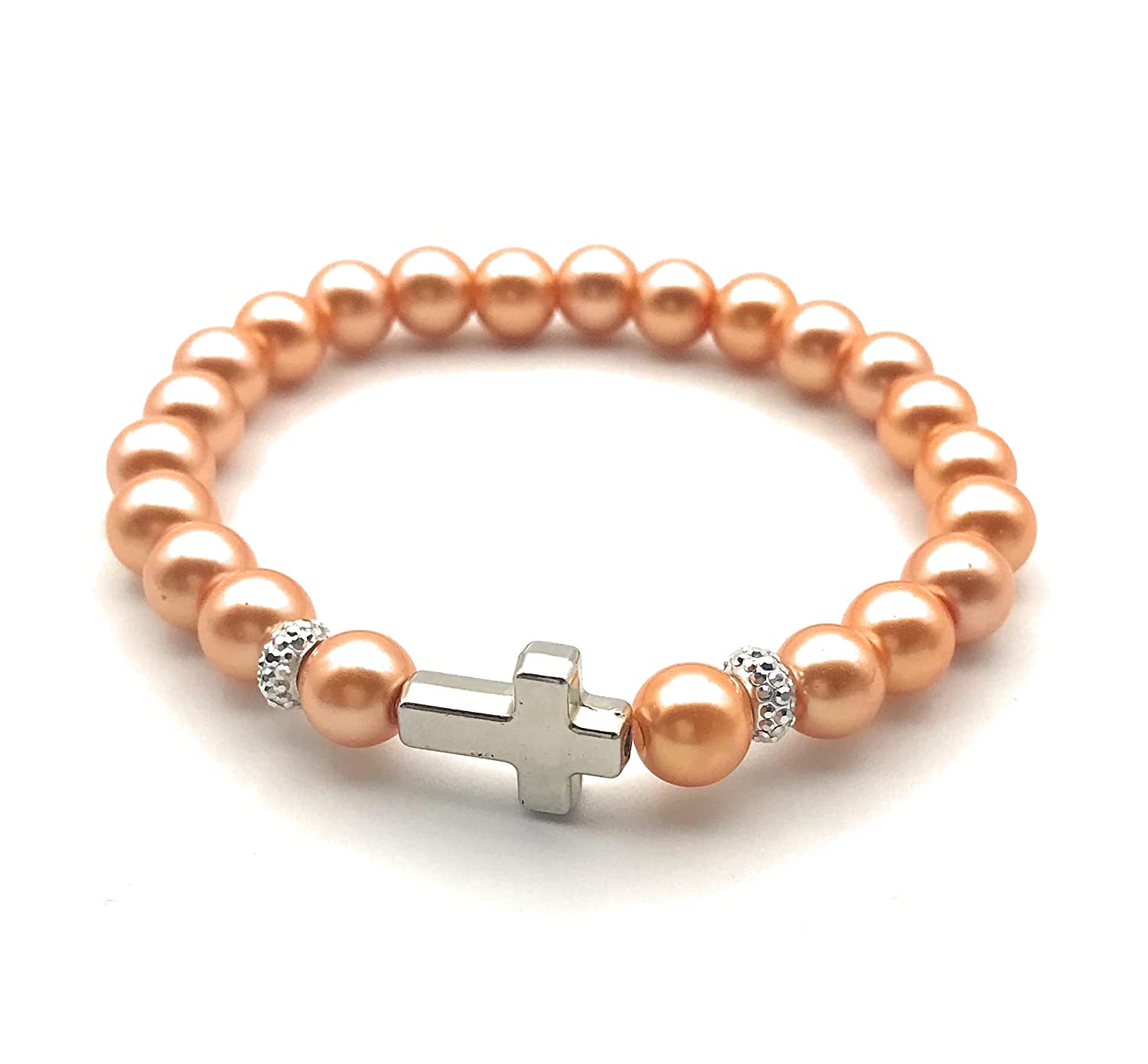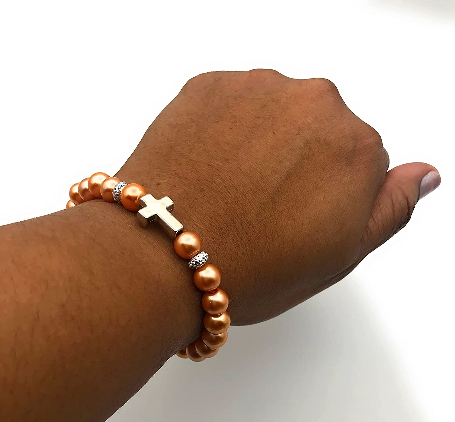 This bracelet is perfect for a variety of occasions. It can be worn as an everyday accessory to add a touch of elegance to your outfit, or it can be worn for special occasions such as weddings, parties, or religious events. This beaded silver cross bracelet comes ready for gift giving which is perfect for gifting to someone special. The orange faux pearl beaded stretch bracelet with silver cross accent from Scott D Jewelry is a beautiful and elegant accessory that is perfect for adding a pop of color and sophistication to any outfit. Its high-quality materials, beautiful design, and comfortable fit make it a must-have accessory for any jewelry collection. Whether you're looking for an everyday accessory or something special for a special occasion, this orange beaded silver cross bracelet is the perfect choice. So, order yours today!